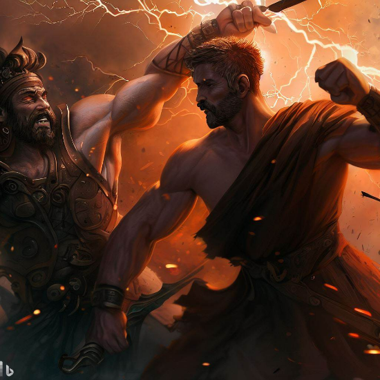 - 헤파이스토스는 검과 방패를 손에 들고, 화려한 전투 의상을 착용한 모습으로 묘사됩니다. 불꽃과 화염을 상징하는 모습도 가지고 있습니다. 아레스는 주로 전장에서 격렬한 싸움과 전투를 이끌고 싸우는 모습으로 묘사되며, 강한 군사적 기량과 무자비한 전투력을 지니고 있습니다.