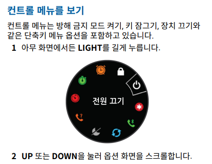 - 아무 화면에서 LIGHT를 길게 눌러 컨트롤 메뉴에 접근합니다