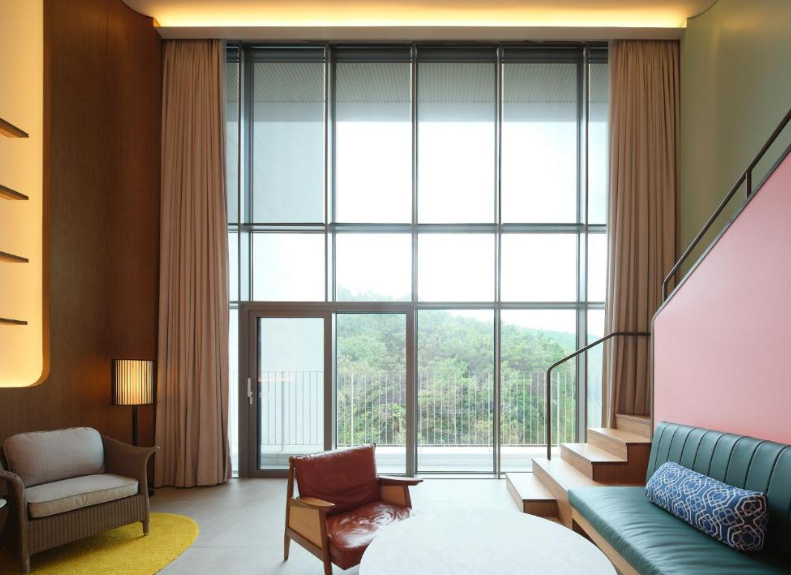 산이랑 바다 사이에 자리잡은 리조트라 그런지 경치 하나는 예술이에요.