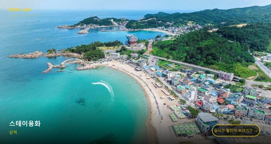 스테이용화 주변에는 다양한 관광 명소가 있어서, 삼척 여행을 더욱 풍성하게 즐길 수 있어요. 호텔에서 도보로 이동 가능한 거리에 용화해변이 있고, 조금만 이동하면 해상케이블카를 타고 멋진 바다 풍경을 감상할 수 있습니다. 또한, 삼척항이나 죽서루 등도 가까운 거리에 있어서 다양한 볼거리를 즐길 수 있어요. 맛집으로는 삼척항 근처에 있는 싱싱한 해산물 식당들을 추천합니다!