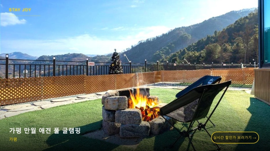 글램핑장 주변에는 자라섬, 남이섬 등 유명 관광지가 많이 있어요. 시간이 된다면 가평의 아름다운 자연을 만끽하며 관광을 즐기는 것도 좋을 것 같아요. 또한, 가평에는 맛있는 닭갈비집과 카페들이 많으니, 댕댕이와 함께 맛집 투어를 떠나는 것도 추천합니다!